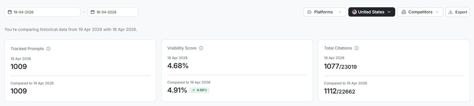 Prove AI visibility growth with historic performance tracking and measurable citation impact.