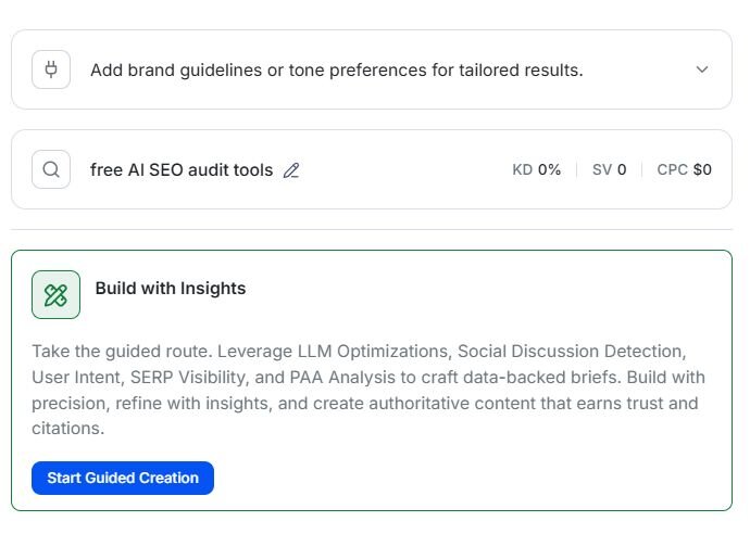 Turn visibility gaps into actionable content creation and publisher outreach workflows.