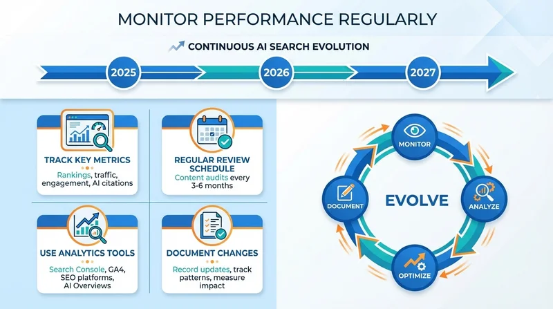 Document your changes and their impact. Keep records of what you updated, when, and what results you saw. As AI search evolves throughout 2025-2027, your documentation will reveal patterns about what makes content citation-worthy.
