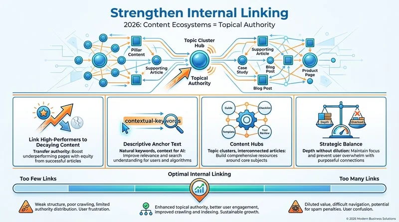 In 2026, SEO will be driven by interconnected content ecosystems that demonstrate comprehensive topical authority. Internal linking is the foundation of these trust networks.